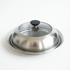 ドーム型ではありませんが、手持ちのフライパンやお鍋の本体と蓋を利用するタイプの蒸し器です。フライパンやお鍋でガラスの蓋を利用している方におすすめです。複数重ねて利用することができます。4サイズ展開。 |